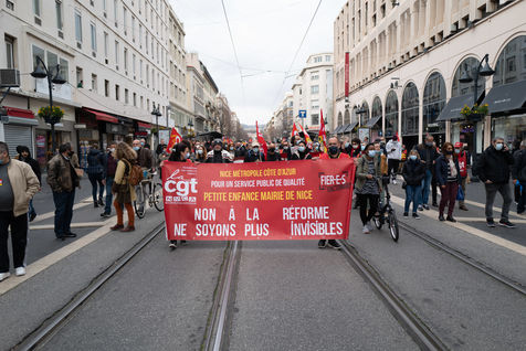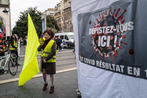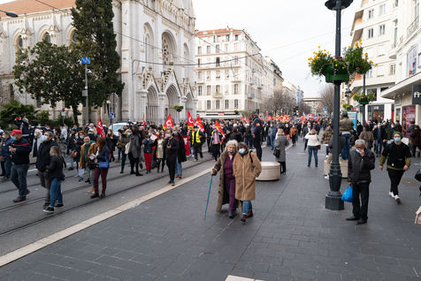 In France, in Nice, from the SNCF railway station to the Garibaldi square, more than 1500 people demonstrated for the defense of culture, health system, Nice on February 4, 2021.