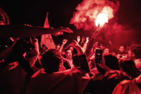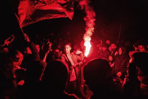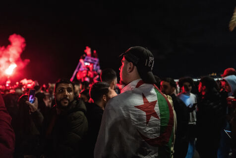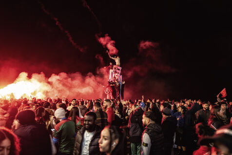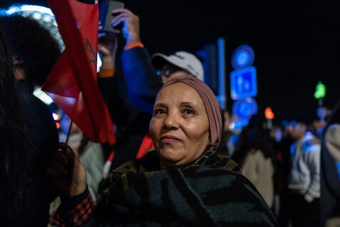 In Nice, France, on the promanade des anglais, Moroccan fans celebrate the victory of Morocco and the qualification for the semi-finals of the soccer world cup in Qatar