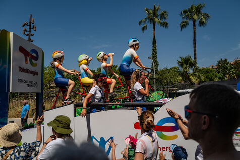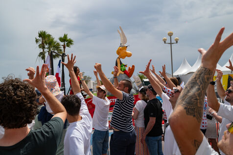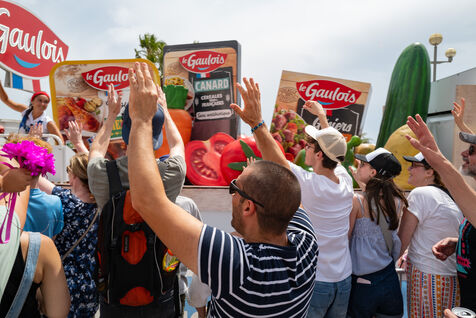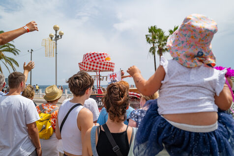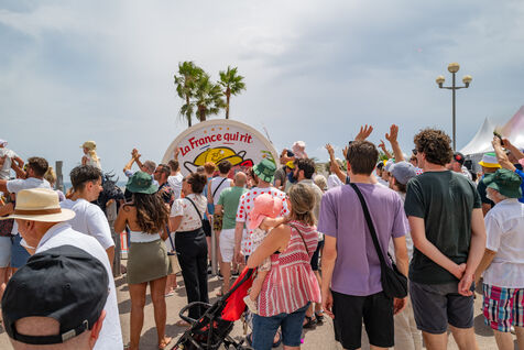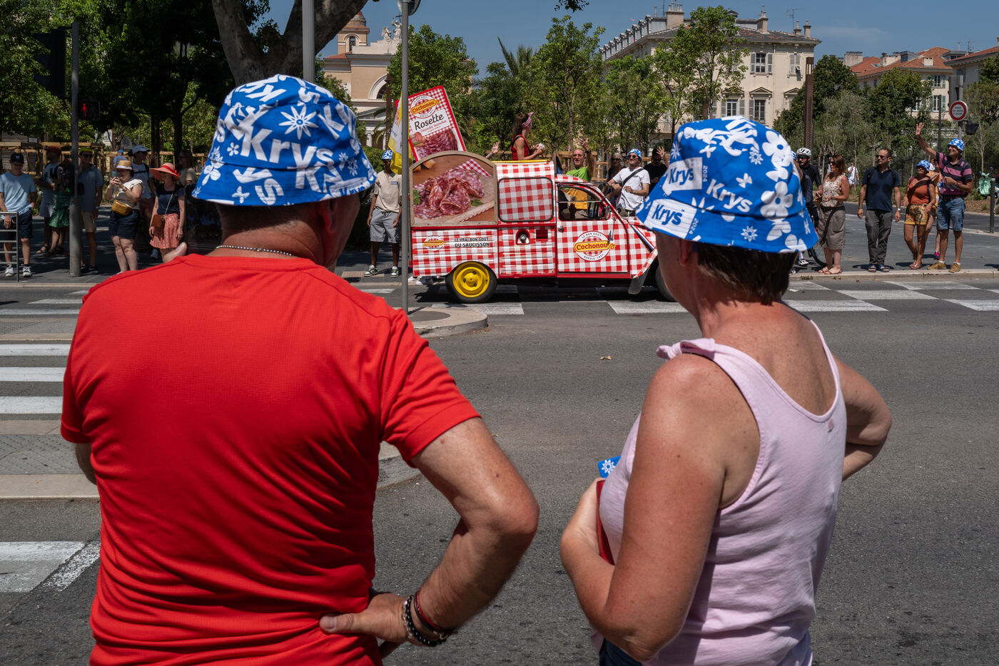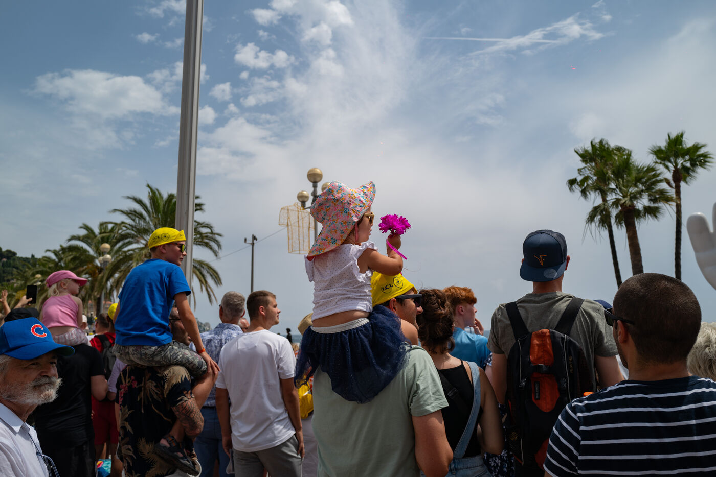 La caravane du tour de France de cyclisme arrice à Nice pour les deux dernière étapes. Toute la ville est en effervescence et des dizaines de milliers de participants attendent le passages des courreurs sur la promenade des anglais.