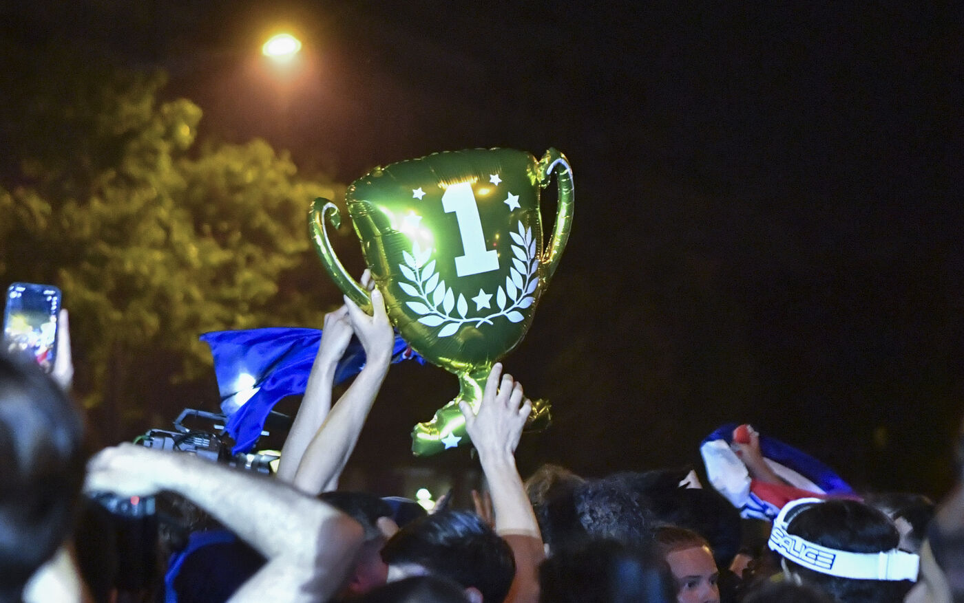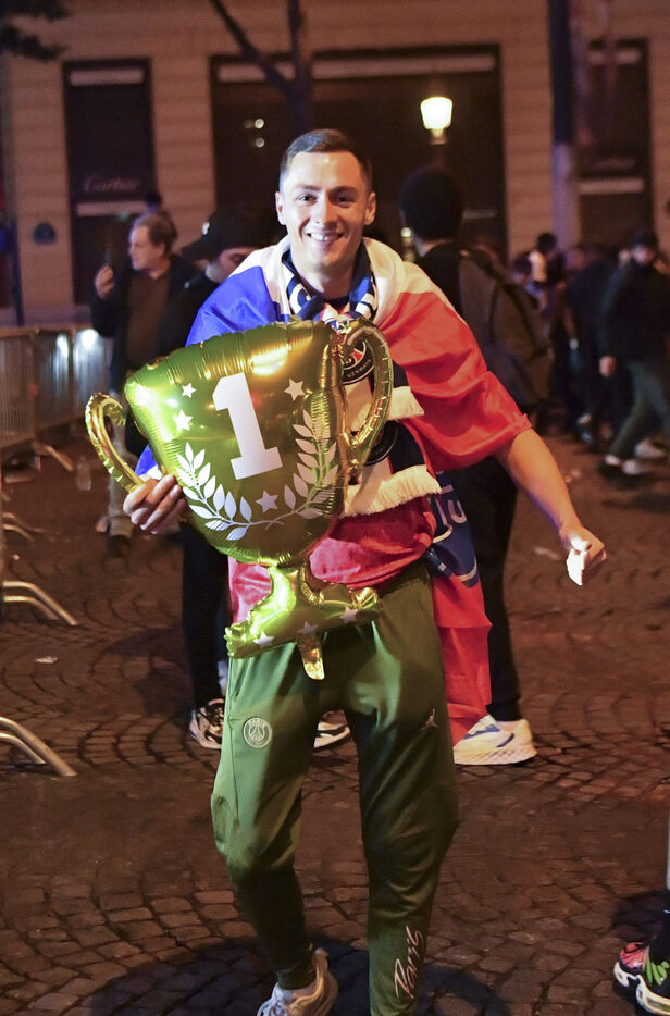 A scene of joy in Paris after PSG's victory in the Champions League final.