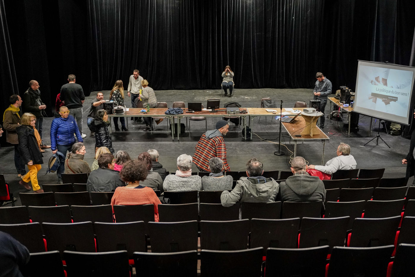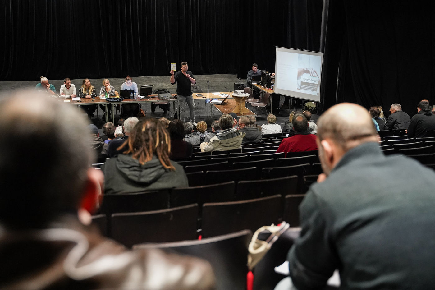 Les gilets jaunes du saumurois organisent et animent un grand débat dans la salle Beaurepaire de Saumur. Une centaine de personnes sont venus débattre.