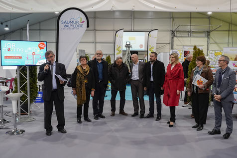 Signature of the "Territory of Industry" Memorandum of Understanding. This was signed between the Saumur Val de Loire conurbation, the State, the Region and the Chamber of Commerce and Industry (CCI) in the presence of Laetitia Saint-Paul, Vice-President of the National Assembly and Deputy for Maine-et-Loire and Christelle Morançais, President of the Pays de la Loire region. This signature took place during the "job meeting" among companies, organisations and training establishments and surrounded by Saumur residents looking for work or vocational training.