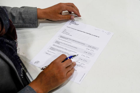Vaccination course against covid-19 for a person coming to be injected with the Moderna vaccine in the Saumur vaccinodrome, on 12 May 2021.