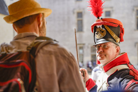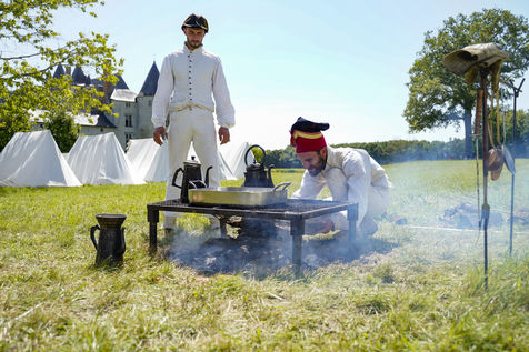 On the occasion of the bicentenary of Napoleon's death, imperial history enthusiasts are re-enacting a life-size confrontation between the French Empire and the Chouans' army at the Château du Plessis-Bourré (Maine-et-Loire, 49). In period uniforms and costumes, they recreate daily life at the time of the First Empire and the bivouacs of the Great Army.