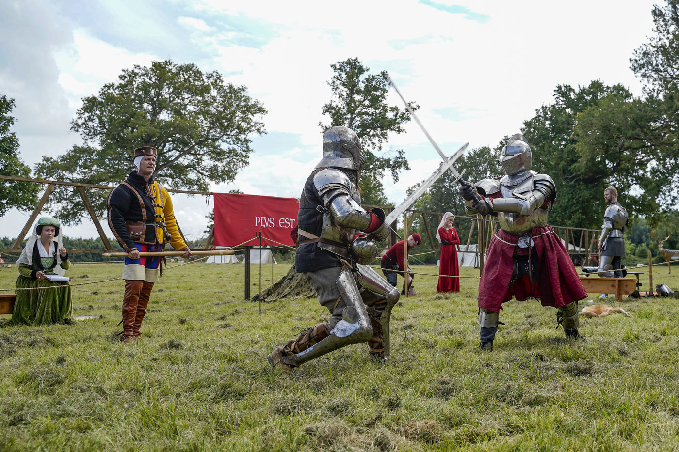 Reconstitutions historiques des grands tournois de chevalerie dans la tradition du Moyen Age, au château du Plessis-Bourré, le 4 septembre 2021.