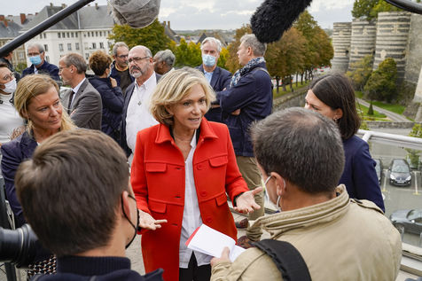 Valérie Pécresse, présidente du conseil régional d'Île-de-France, tient une réunion politique auprès de militants du parti "Les Républicains" (LR) d'Angers pour défendre sa candidature à la primaire LR, dont elle vient de reprendre la carte. Cette élection désignera le candidat, ou la candidate, des Républicains pour l'élection présidentielle de 2022.