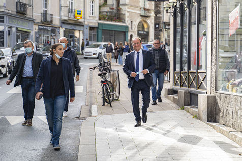 L'ancien président de la République française, François Hollande, dédicace son livre « Affronter » (éd. Stock) à la librairie Richer à Angers, le 30 octobre 2021.