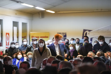 Meeting of Adrien Quatennens, deputy of the North (la France Insoumise - LFI), in Angers as part of the caravans of the Popular Union in support of the candidacy of Jean-Luc Mélenchon for the French presidential election of 2022. Nearly 300 people were gathered to listen to his speech and to get his book "génération Mélenchon" signed.