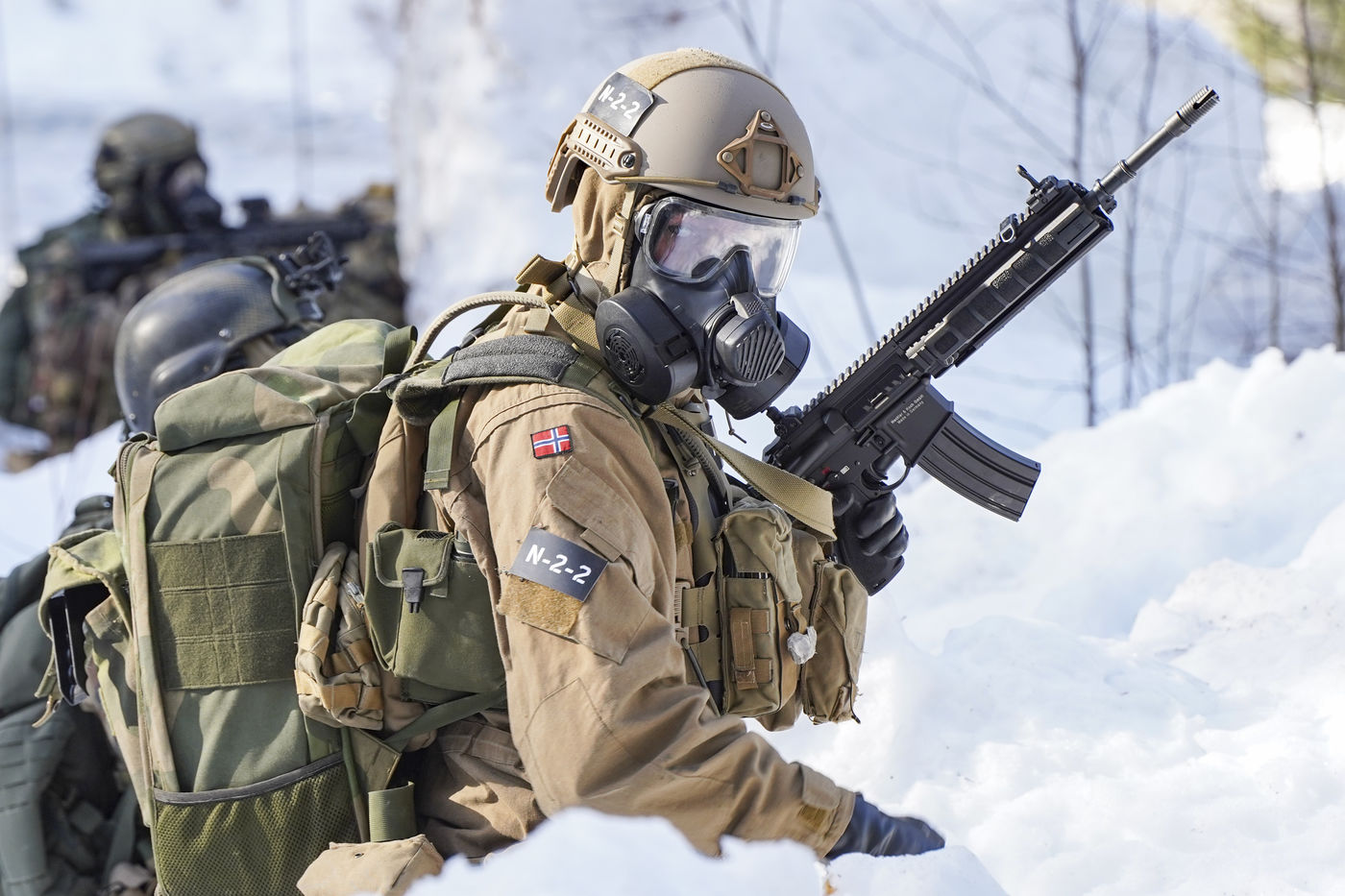 Le 2ème régiment de dragons NRBC (Nucléaire, Radiologique, Biologique et Chimique) est en alerte pour l'OTAN et participe à l'exercice Cold Response 2022, en Norvège. Il s'entraine avec l'armée norvégienne à la lutte contre les menaces NRBC en pratiquant des reconnaissances de zone contaminée, de l'identification et des prélèvements de produits toxiques ainsi que de la décontamination de personnel et de véhicules selon les normes et les procédures de l'OTAN.