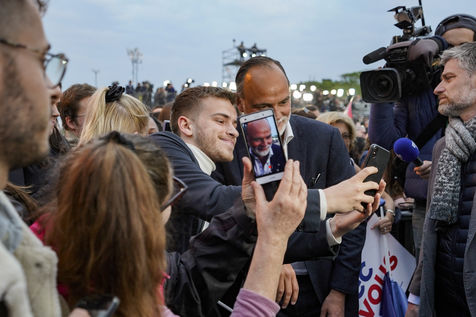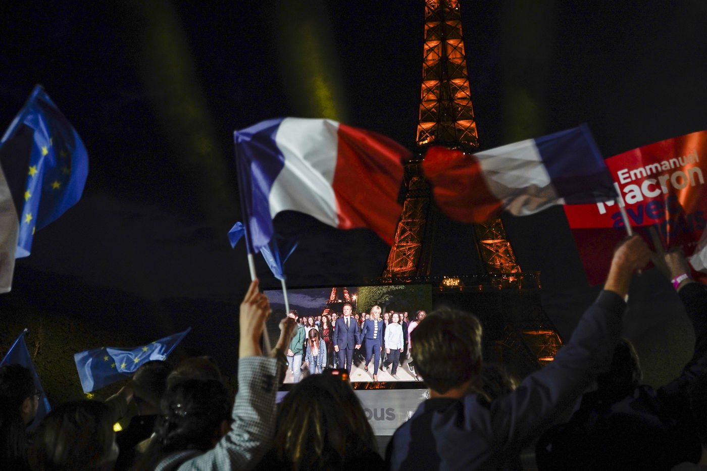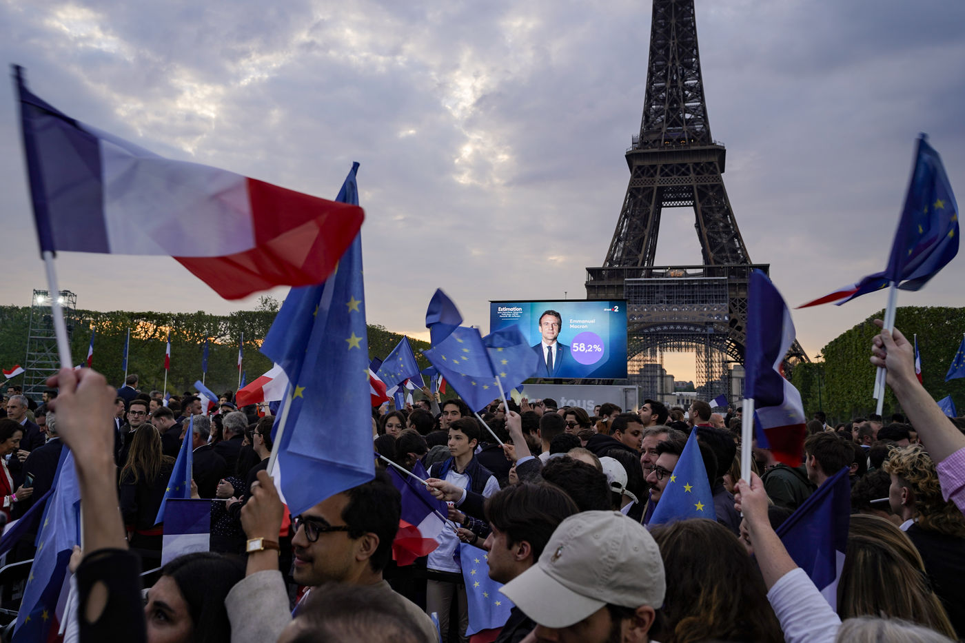 At the foot of the Eiffel Tower and on the Champ-de-Mars, Emmanuel Macron's meeting following his re-election as President of the French Republic on 24 April 2022 is being held.