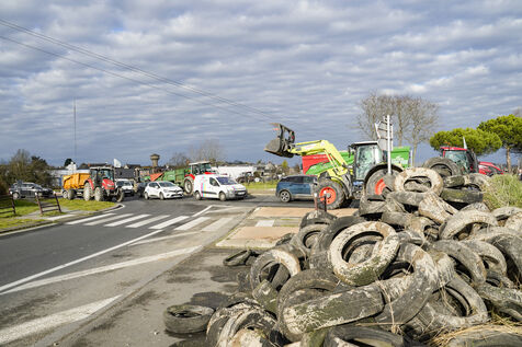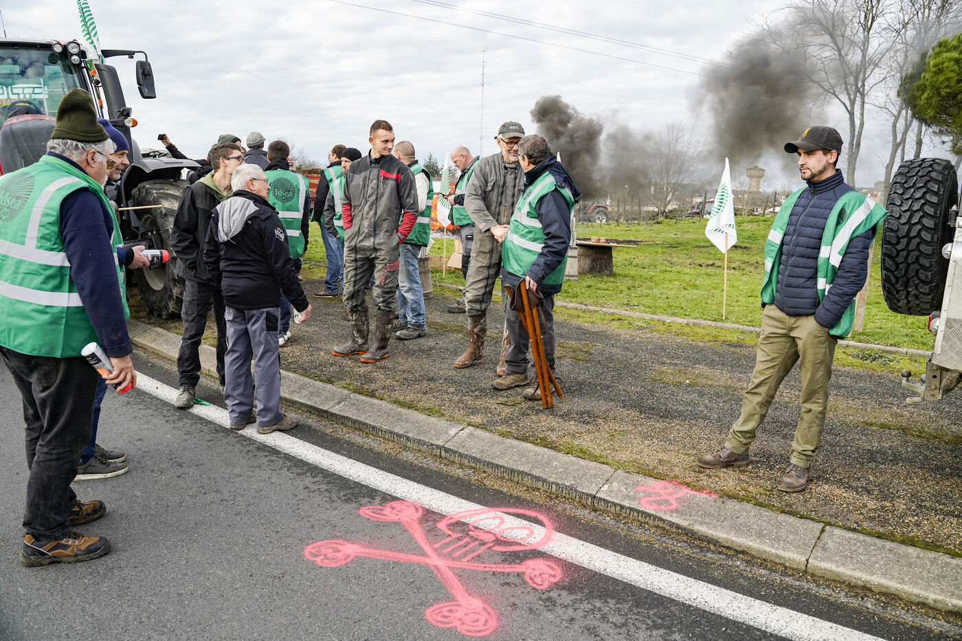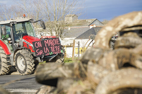 Around fifty farmers from FDSEA 49 (Fédération Départementale des Syndicats et Exploitants Agricole) have gathered with their tractors at the roundabout at the entrance to the town of Brissac-Loire-Aubance, near Angers. These angry farmers, wearing green waistcoats, have set up a roadblock to filter traffic in order to demonstrate their dissatisfaction with their working conditions, the weight of European standards to which they are subject, and their low wages. Their slogan is "more prices, less standards".