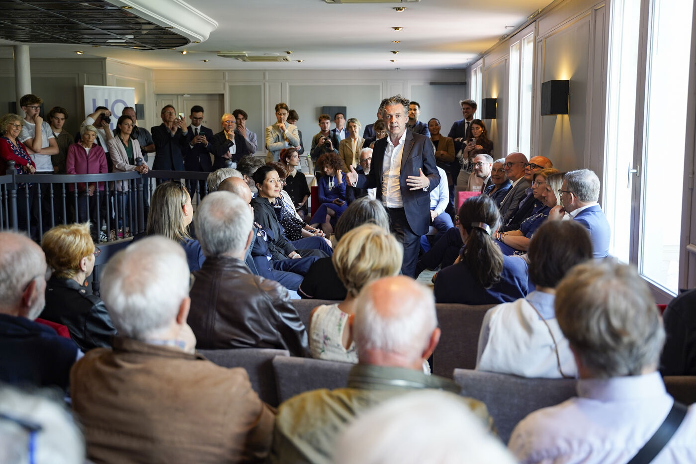 On 4 July 2024, a meeting of "Horizons" party activists in the Ralliement brasserie. Three days before the second round of the legislative elections, Edouard Philippe (former Prime Minister) and Christophe Béchu (Minister for Ecological Transition and Territorial Cohesion) thanked the activists and supported the candidates for the Maine-et-Loire legislative elections of the presidential majority (Renaissance, Horizons, Modem).