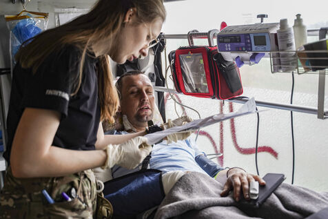 Durant le trajet de retour, chaque membre de l’équipe se consacre aux soins : stabilisation des paramètres vitaux, administration de médicaments, surveillance continue. L’ambiance reste concentrée et calme. Une fois arrivés à Dnipro, les blessés sont confiés au personnel hospitalier local, qui assure leur prise en charge de longue durée.