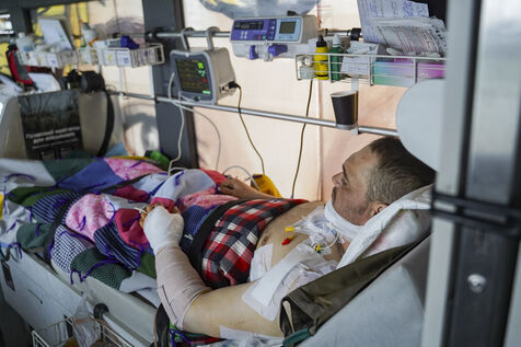 During the return journey, each member of the team devotes himself to care: stabilisation of vital parameters, administration of medication, continuous monitoring. The atmosphere remains concentrated and calm. Once they arrive in Dnipro, the injured are handed over to the local hospital staff, who provide long-term care.