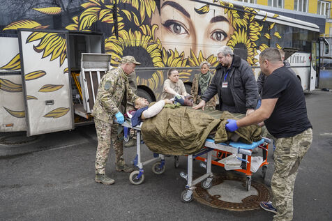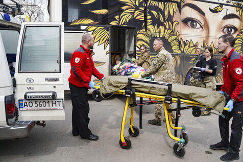 UKRAINE: YOUNG VOLUNTEERS EVACUATE THE WOUNDED FROM THE FRONT IN MEDICAL BUSES