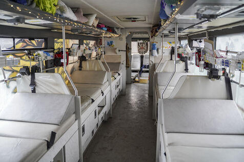 But the mission doesn't stop there. Once back at their base, the nurses clean and disinfect the bus, repackage the medical equipment and prepare for the next operation. In their spartan accommodation, a cramped three-room house where the bunk beds fill almost all the space, they find a moment of respite: a quick meal, a few exchanges, before perhaps being able to rest for a few hours before the next operation.