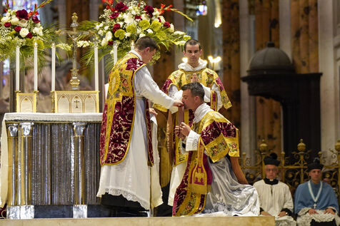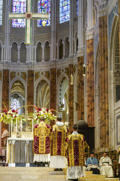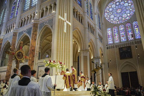 In Chartres cathedral on 9 June 2025, the closing mass of the 43ᵉ Notre-Dame de Chrétienté pilgrimage was held, celebrated according to the traditional Tridentine rite, at the end of the walk between Paris and Chartres.