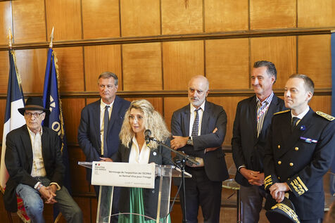 Patricia Miralles, Minister Delegate for Remembrance and Veterans Affairs, inaugurates the ECPAD (Defence Audiovisual Communication and Production Establishment) exhibition at the Visa pour l'Image 2025 festival, at the Palais Consulaire in Perpignan, on 1 September 2025.