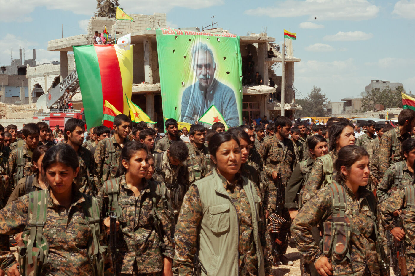 Mais au milieu de ce paysage de destruction, un autre visage de Kobané apparaît : celui de sa jeunesse combattante. Participation in the guerrilla and liberation struggle of Kobane was the initiation of a political and social path undertaken by many boys and girls from the small town of Kobane.
