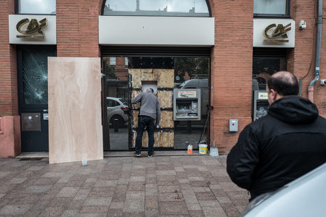 Vitrines saccagées, distributeurs de billets éclatés, horodateurs peints, la facade du Capitole souillée d'huile de vidange, tags dans le centre ville après l'acte X de la mobilisation du mouvement des Gilets Jaunes. Au départ ils protestents contre la hausse du carburant et maintenant pour le pouvoir d'achat, la mise en place du RIC.