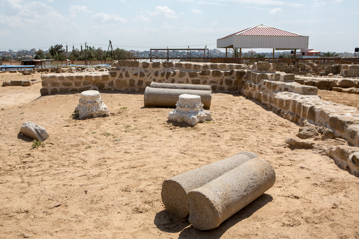 In 1997, following the construction of a real estate project on the territory of the municipality of Nuseirat, 10 km south of Gaza, a Byzantine architectural ensemble of about one and a half hectares was discovered by archaeologists from Gaza Antiquities Service.