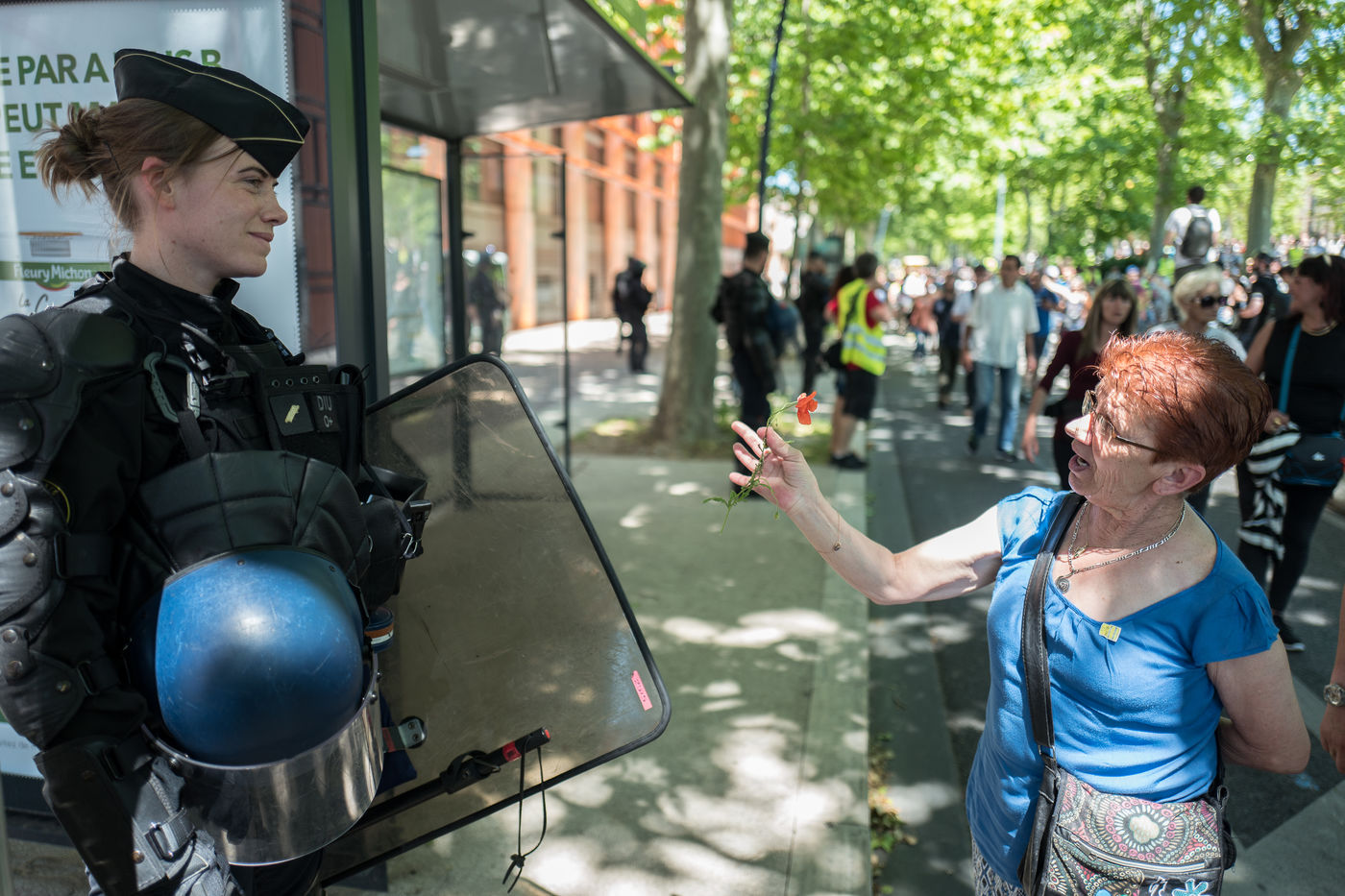 Un millier de personnes ont défilé dans le centre ville de Toulouse dans le sud de la France lors de l'acte XXIX du mouvement des Gilets Jaunes. Le mouvement a commencé en France le 17 novembre 2018 pour protester dans un premier temps contre la montée du prix des carburants, pour le pouvoir d'achat, la création du RIC et le mouvement s'est transformé en une grande révolte contre le président français Emmanuel Macron. Environ 1000 personnes ont manifesté calmement avant que la police utilise des gaz lacrymogènes pour disperser la manifestation. 1er juin 2019, Toulouse, France.