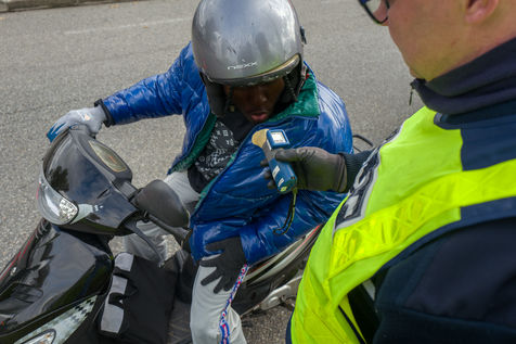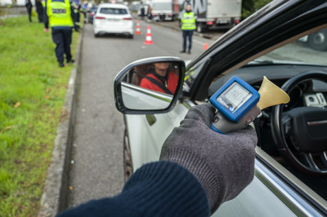 Dans le cadre d'une opération de sensibilisation aux accidents impliquant des véhicules et aux nombres de morts sur les routes du département des fonctionnaires de la police nationale procèdent à des tests alcooliques et salivaires sur des automobilistes.