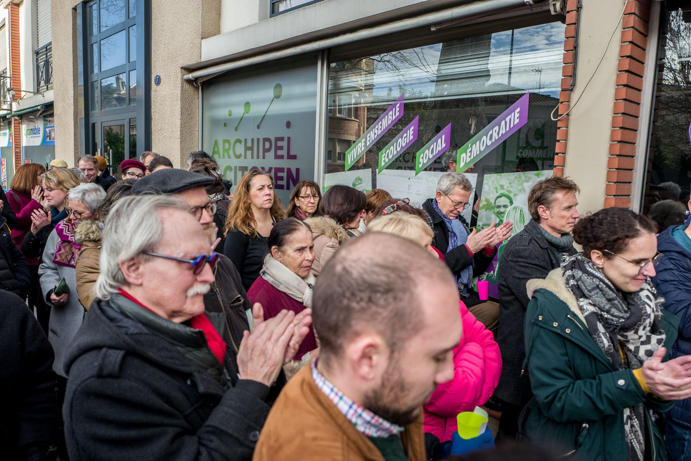 Lors de l'inauguration du local de campagne du parti politique Archipel Citoyen qui porte la campagne Toulouse en commun et défend un renouveau politique fondé sur la democratie permanente pour les municipales de Toulouse 2020 avec Antoine Maurice comme tête de liste.