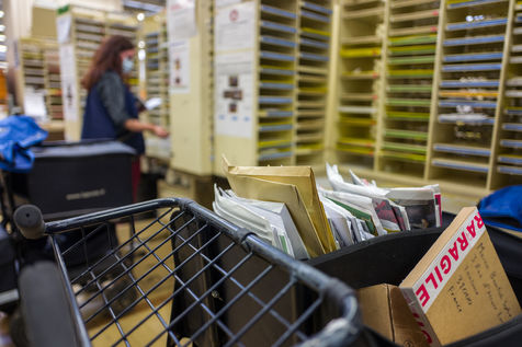 Laetitia est factrice au centre de tri au bureau de Poste du Capitole et elle effectue sa tournée dans le centre ville alors que le France est en confinement depuis le 17 mars 2020 pour lutter contre l'épidémie du Coronavirus, Covid19.