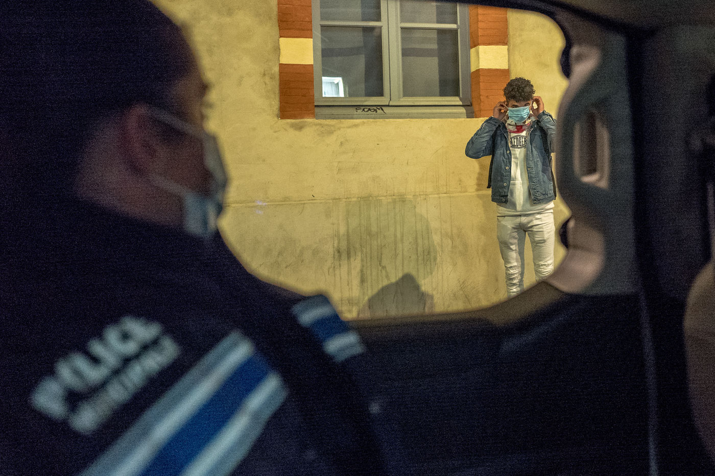 Un equipage intervient chez des particuliers pour des nuisances sonores, et en patrouille, ils arrêtent et contrôlent les personnes encore dehors et appliquent des amendes pour non port du masque visible.