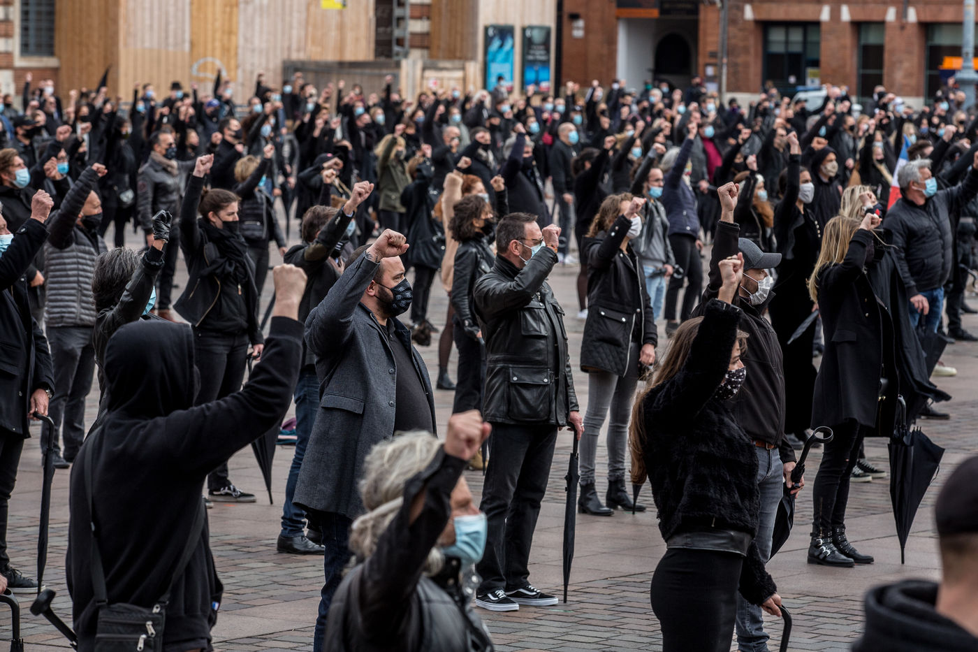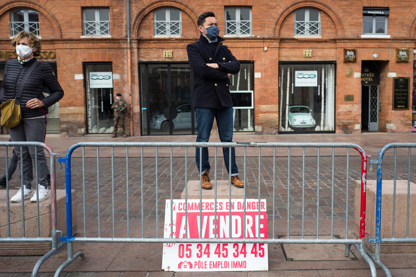 A l'appel de syndicats patronaux, un millier de commercants et petits entrepreneurs des commerces non essentiels ont realisé un die-in sur la place du Capitole.
