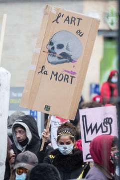 Demonstration against the administrative closure of the artist collective Mix art Myrys. Present for more than 25 years in the artistic life of the city of Toulouse, it is a space of human and collective experimentation, a place that has become a laboratory for artistic research in creation as well as in diffusion.