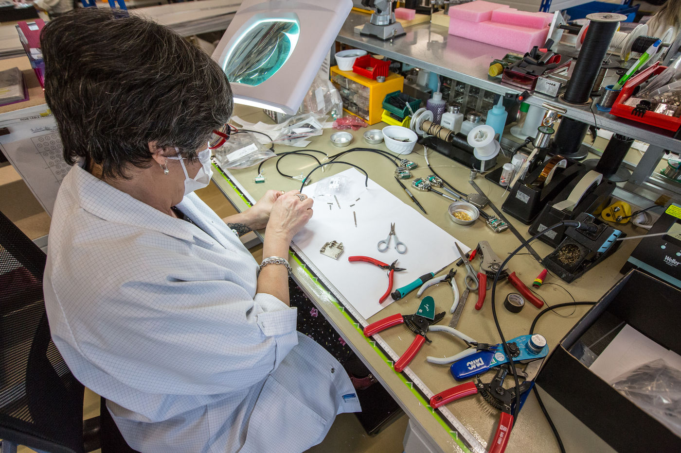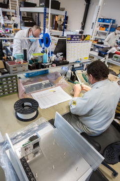 Employees work in the premises of the Microtec company, which focuses its activities mainly on the space, aeronautics, defense, automotive and medical sectors. This company specializes in the design, industrialization and manufacture of cards, electronic and mechatronic equipment, test engineering, prototyping, industrial wiring.