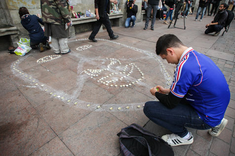 Capitol Square tribute in memory of victims of bombings Paris on November 13. Islamic jihadist state have claimed a series of coordinated attacks by gunmen and suicide bombers that killed at least 129 dead in the French capital in several sites of the city. 11/14/2015, TOULOUSE, FRANCE