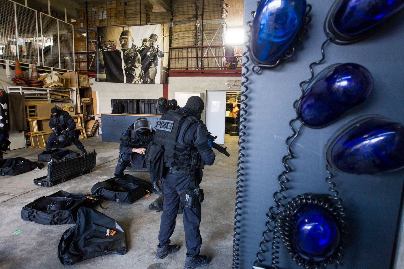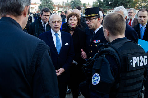 The Interior Minister Bernard Cazeneuve during a visit to Toulouse, he attends a demonstration of inter-regional intervention platoon of Police ( PI2G ) and went to the central police station in Toulouse to meet with representatives of the all law enforcement and security. 22/12 /15- Toulouse, FRANCE