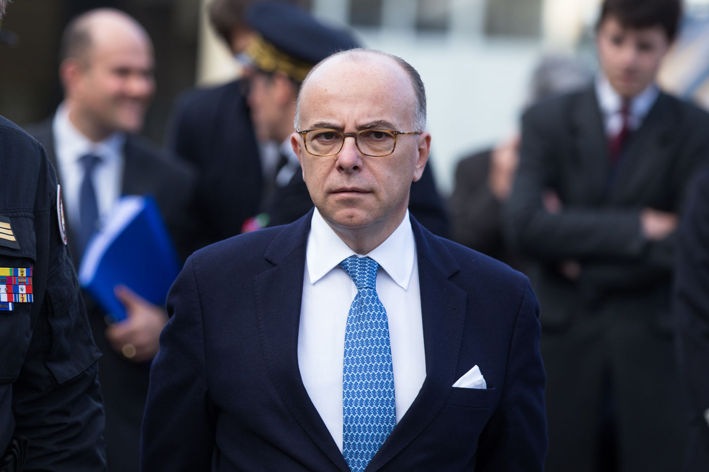 Le Ministre de l'Intérieur Bernard Cazeneuve lors d'une visite à Toulouse, Il assiste à une démonstration du peloton d'intervention inter-régional de la Gendarmerie (PI2G) et se rend au commissariat central de Toulouse pour rencontrer des représentants de l'ensemble des forces de l'ordre et de sécurité. 22/12/15-Toulouse, FRANCE.