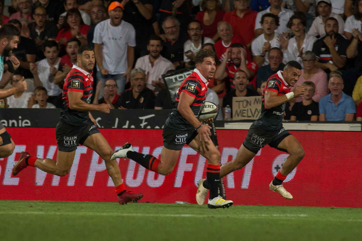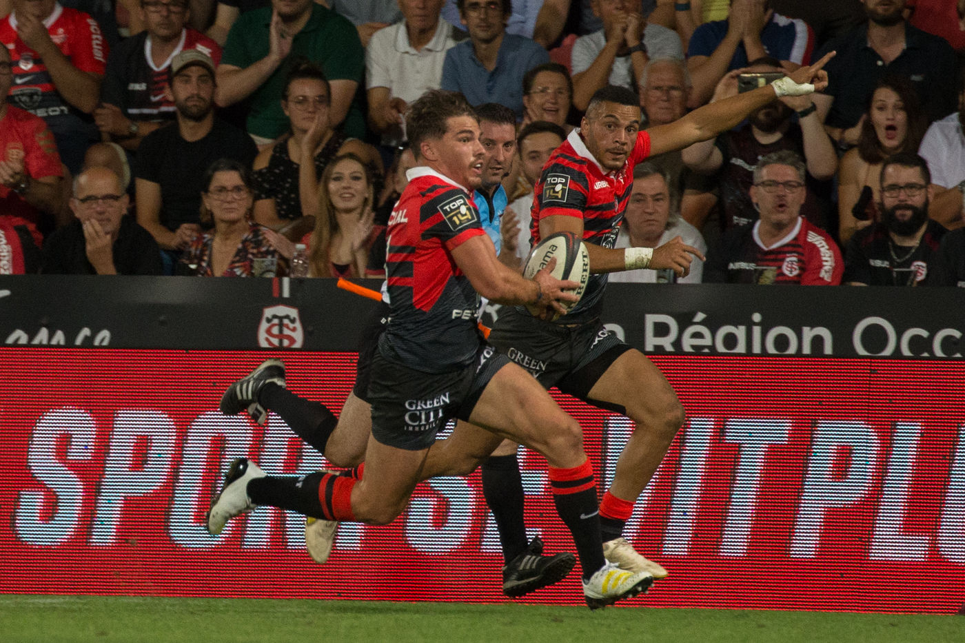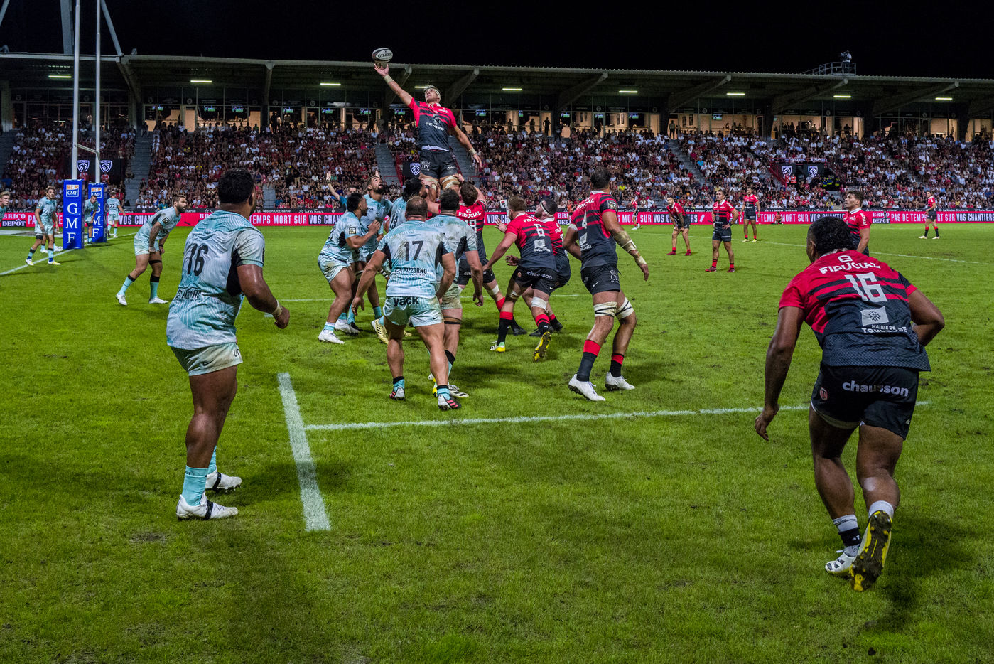 Match du Top 14 français de rugby union entre Toulouse et Toulon au stade Ernest Wallon à Toulouse, dans le sud-ouest de la France.