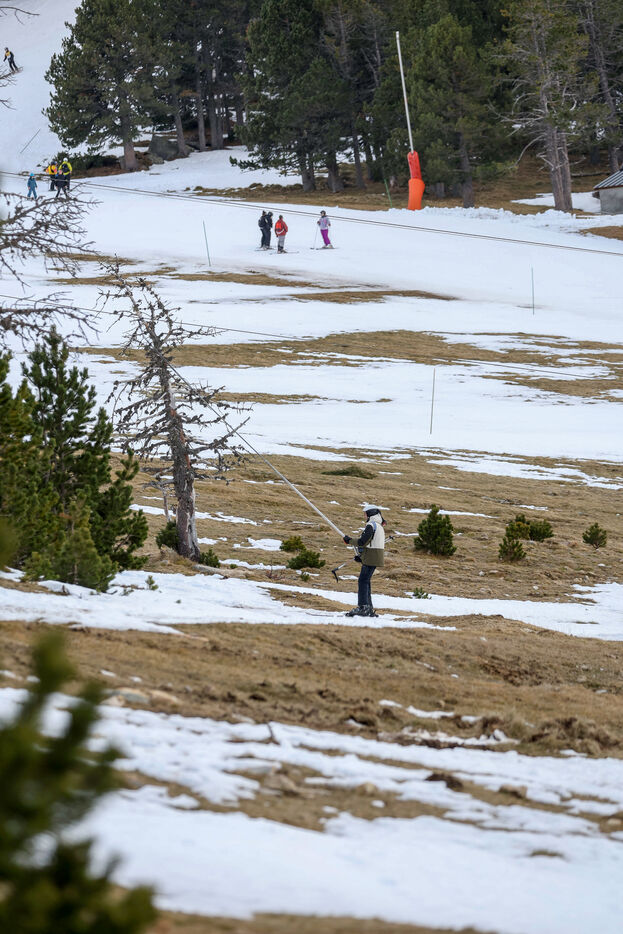 On the Ax ski area 3 areas with very little snow caused by the mild weather and abnormally high temperatures for the season.