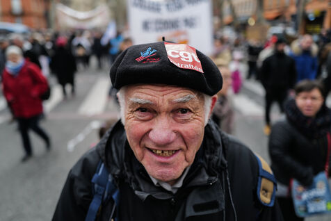 A l appel de tous les syndicats, entre 36.000 et 50.000 personnes ont defile dans le centre ville de Toulouse dans le sud de la France pour protester contre la reforme des retraites prevue par le gouvernement de la premiere ministre Elisabeth Borne.
