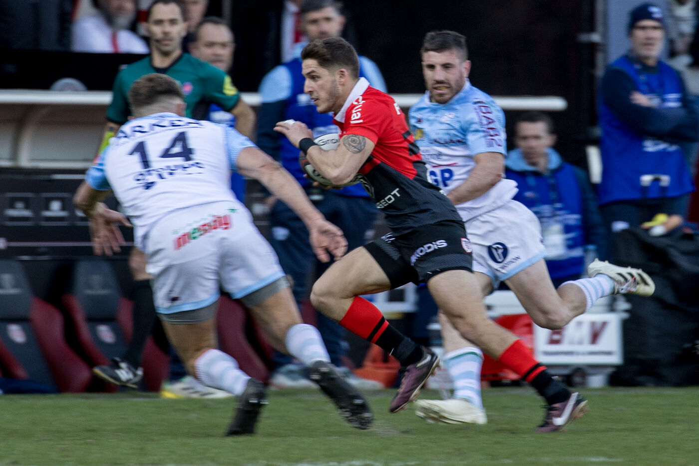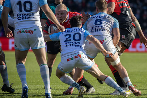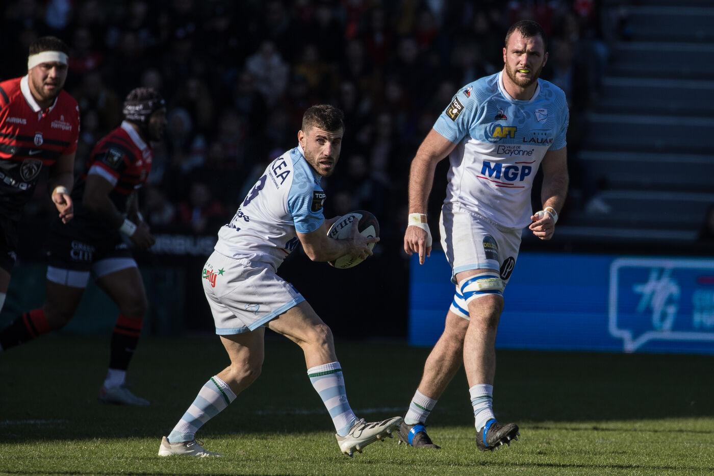 Match de rugby du Top 14 francais entre Toulouse, Stade Toulousain et Bayonne, Aviron Bayonnais au stade Ernest Wallon de Toulouse, dans le sud-ouest de la France.