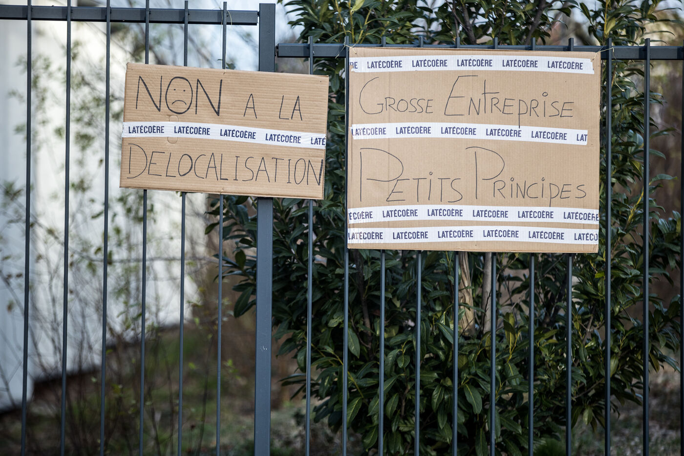 Gathering of Latecoere employees in front of the head office. They demonstrate in the face of a restructuring which provides for the relocation of the industrial tool to two subsidiaries of the group, in Hermosillo, in Mexico and in Prague in the Czech Republic.