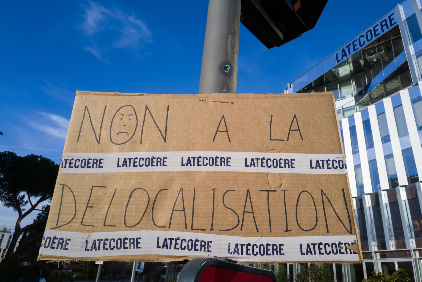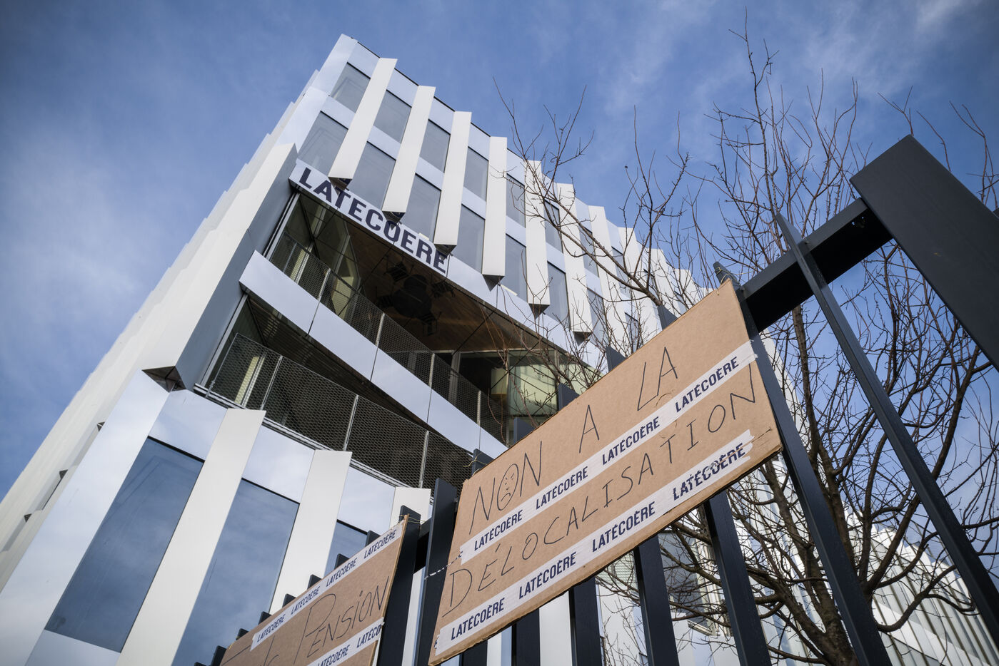 Rassemblement des salaries de Latecoere devant le siege. Ils manifestent face une restructuration qui ?prevoit? la delocalisation? de l outil industriel ?vers ?deux? filiales du groupe?, a Hermosillo,? au Mexique et a Prague en Tchequie.