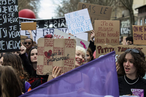 Several thousand people paraded on the occasion of international women s rights day With many slogans. An international day highlighting the struggle for women s rights and in particular for the reduction of inequalities compared to men.
