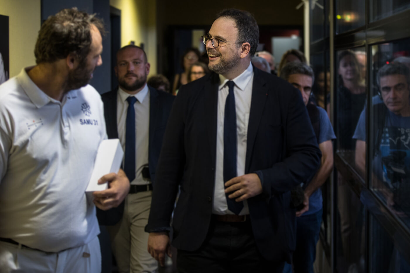 The Minister of Health and Prevention, Aurelien Rousseau (with glasses) and Vincent Bounes, deputy head of the emergency medicine center at the Toulouse University Hospital, head of Samu 3, during a visit to the premises of Samu31.