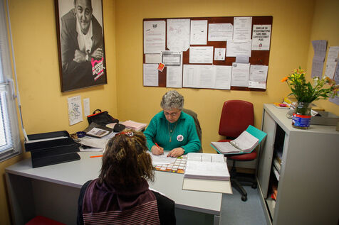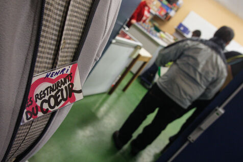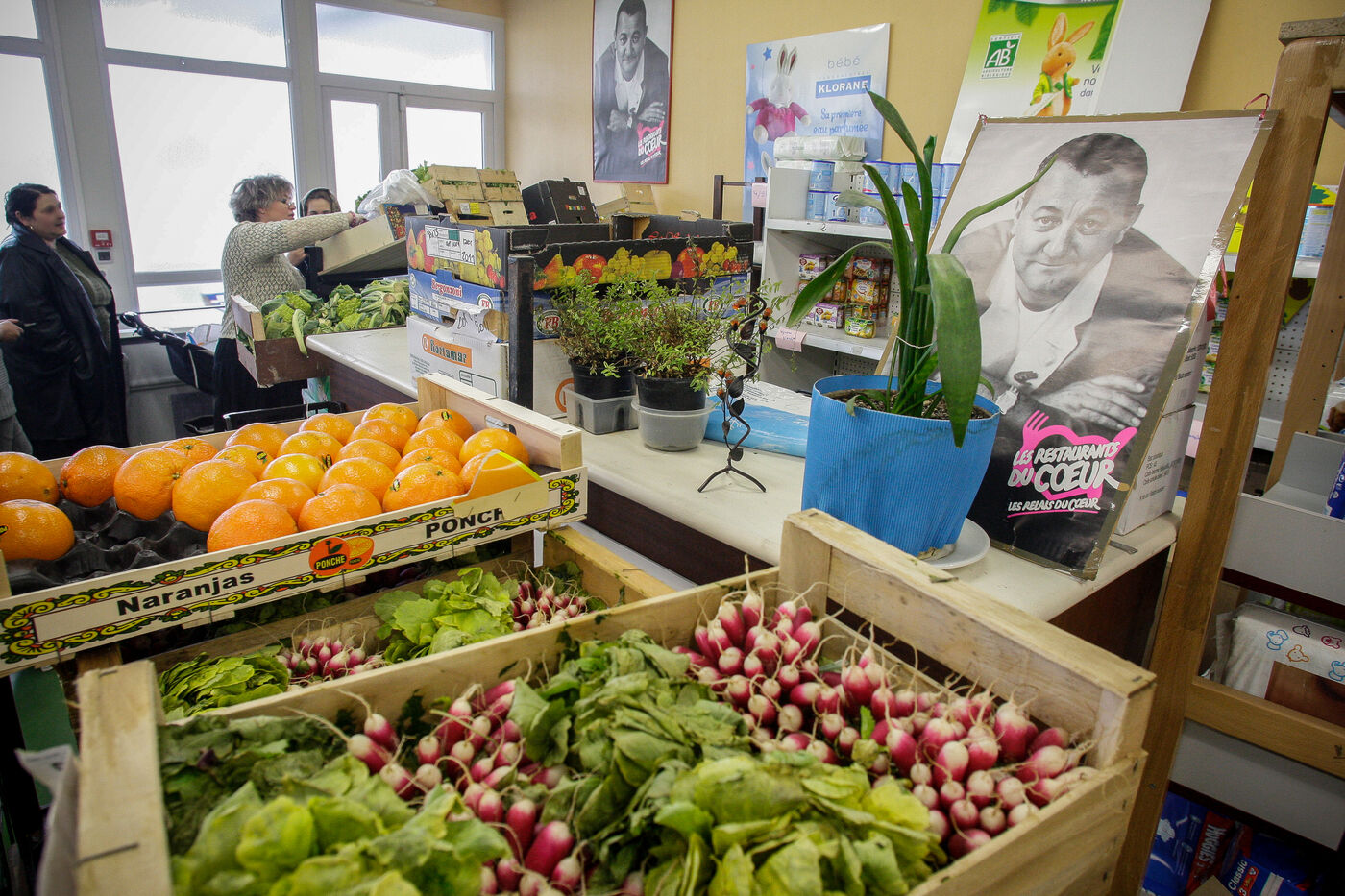 In the premises of Restaurants du Coeur ? Les Relais du C?ur, known as Les Restos du C?ur, volunteers welcome people in financial difficulties and offer them food packages. It is a non-profit association under the law of 1901 and recognized as being of public utility, created in France by the humorist and actor Michel Colucci known as Coluche in 1985.