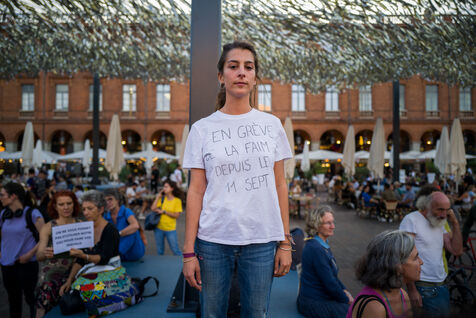 300 people gathered to support hunger strikers opposed to the A69 motorway project linking Toulouse to Castres, a symbolic wall was built at Place du Capitole.