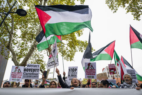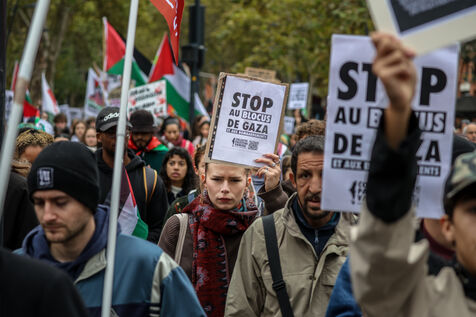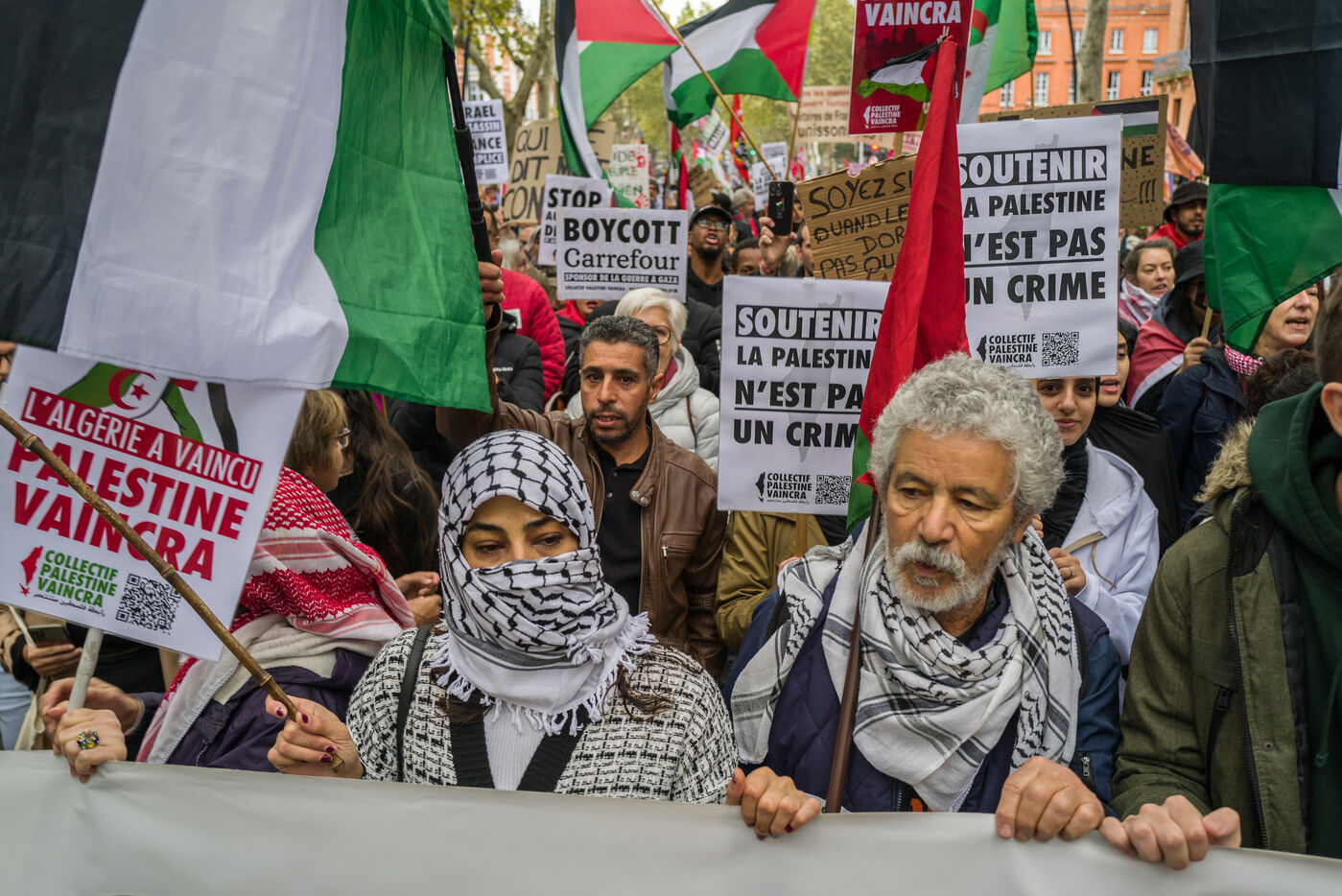 Demonstration in the streets of the city center to denounce the Tsahal bombings on the Gaza Strip and the deaths of civilians and the end of the blockade imposed by the State of Israel in response to the Hamas terrorist attack on October 7.