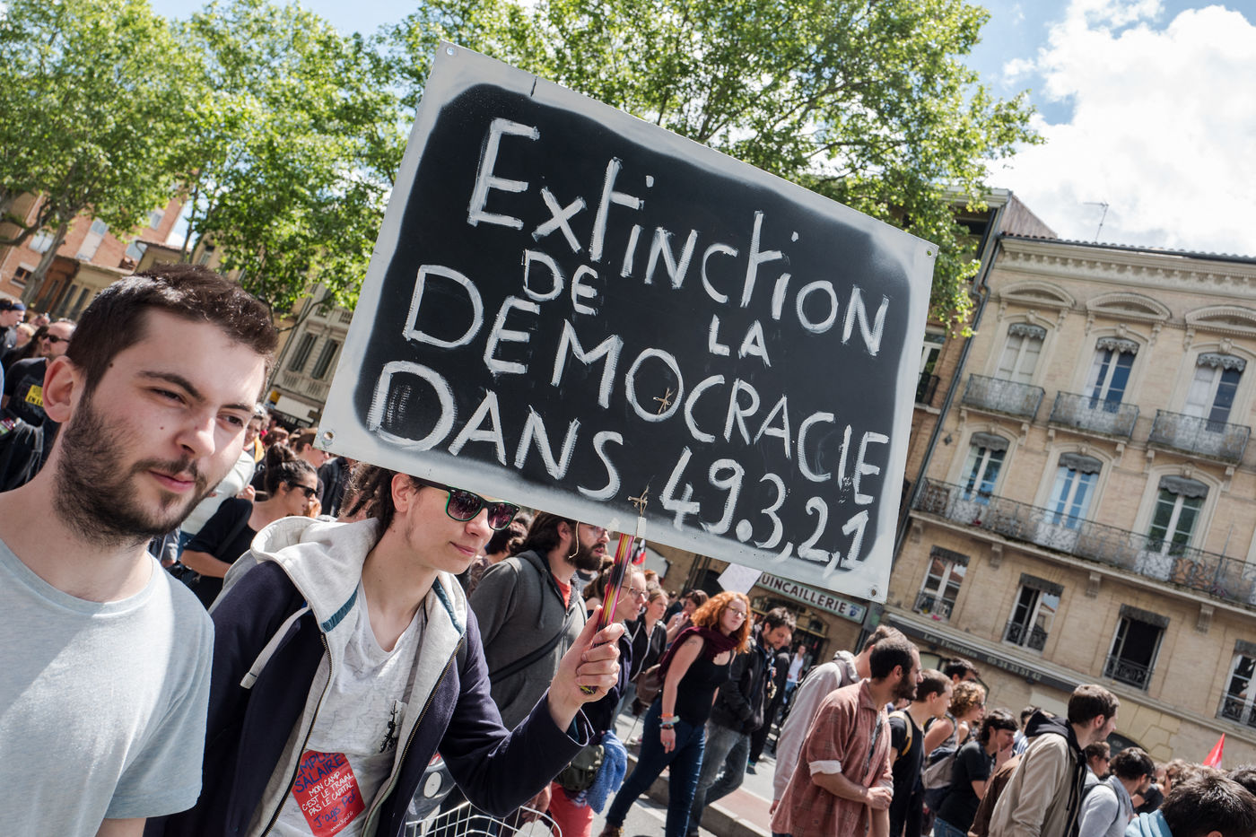 After the demonstration which brought together between 3,000 to 12,000 people against the labor law and the use of Article 49.3 of the french constitution used by the government , several hundred demonstrators go before the police station ask the release of their friends arrested two days earlier. Following their release, a wild demonstration began in the streets of downtown, the police then arrested 9 people.