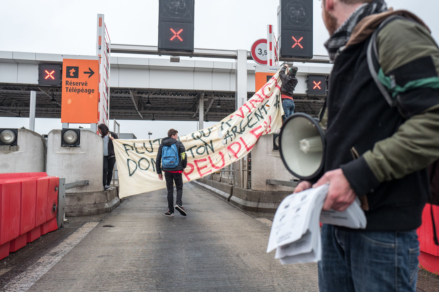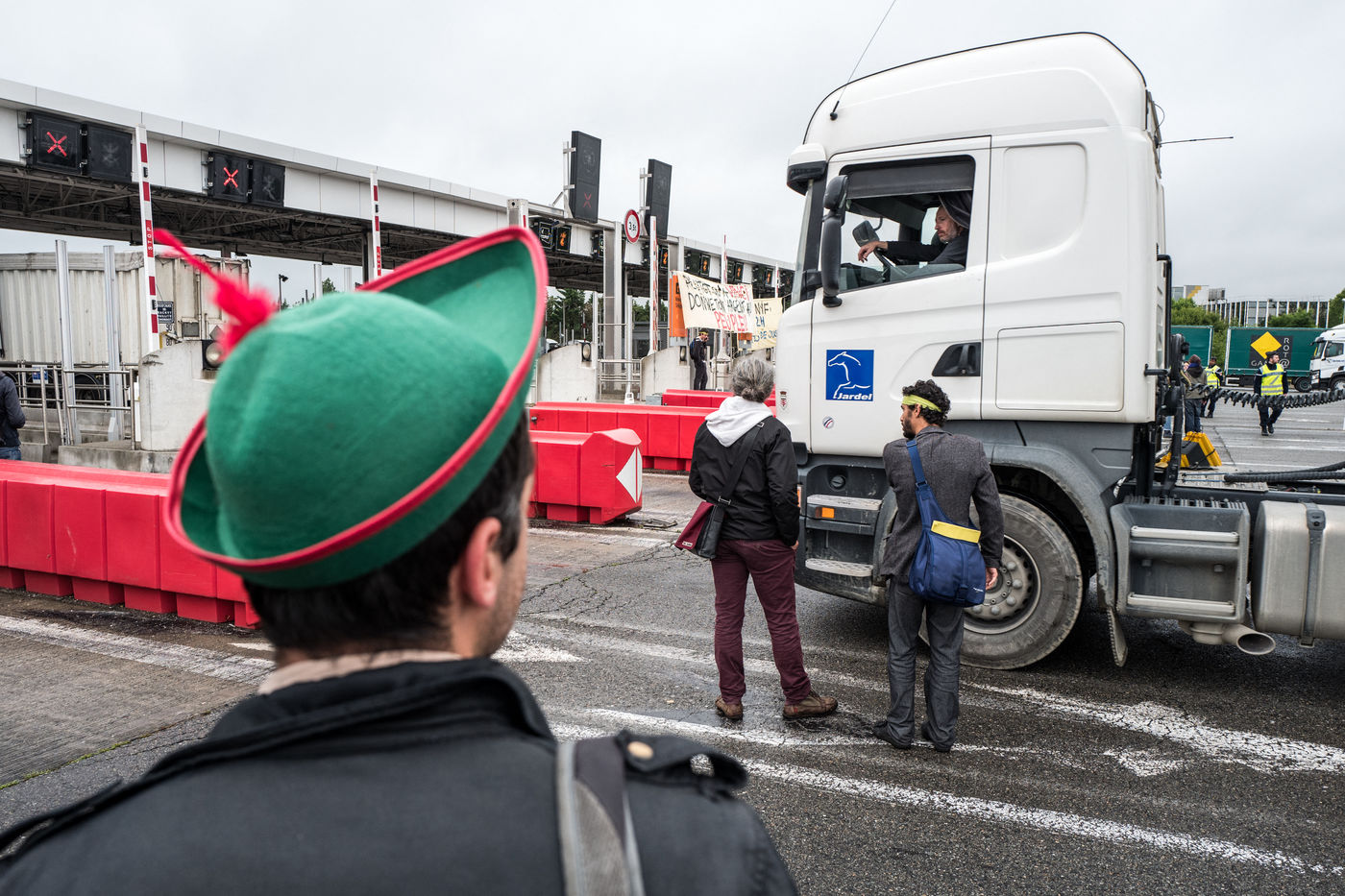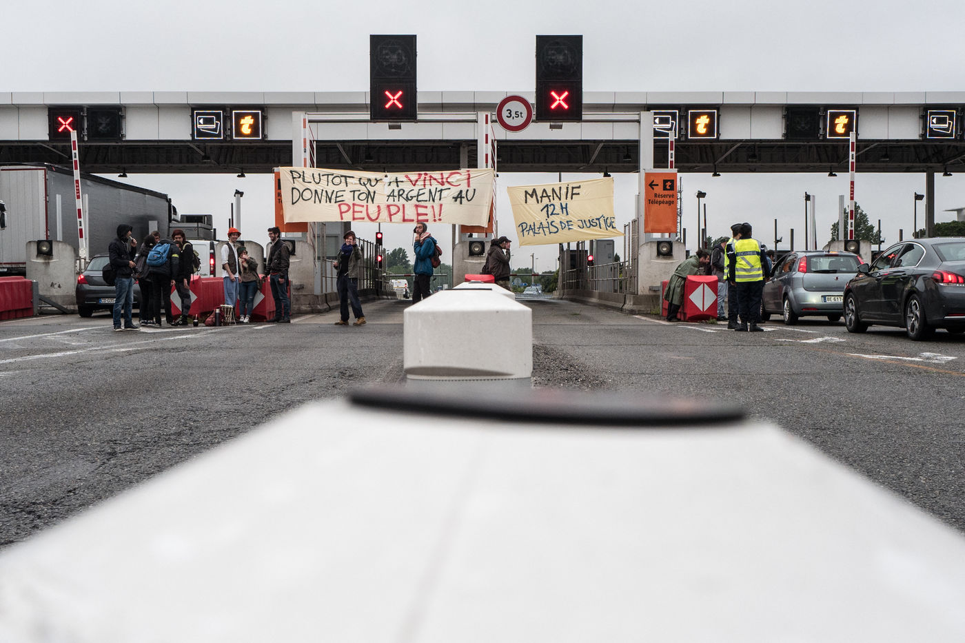Members of the movement Night Stand opposed the Labour Act have opened the toll gates to allow vehicles.