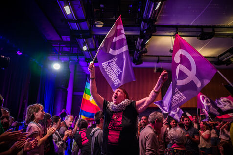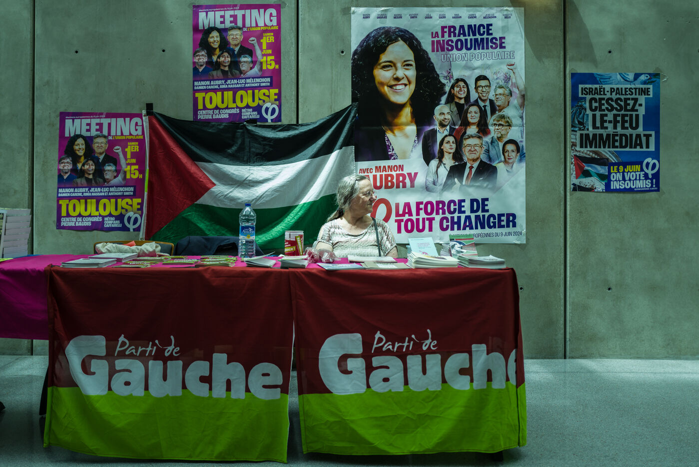 France, Toulouse, 2024-06-01. Atmosphere with activists during the meeting of Manon Aubry, La France Insoumise (LFI) candidate in the European elections. The next European elections will take place in the 27 member states of the European Union, in France, they will take place on June 9.